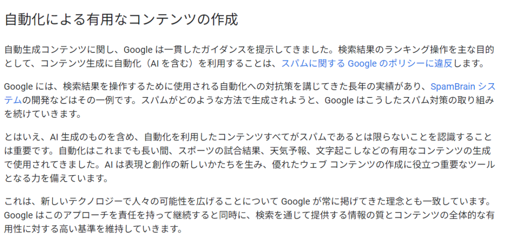 つまり、根拠のあるオリジナルな要素を優遇すると言っているわけですから、AIではこの観点が担保できません。AIの自動生成に追記していくと検索順位はあがりやすくなります。