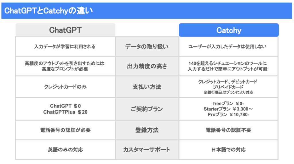 - Catchy(キャッチ―)は他のAIツールと何が違う?