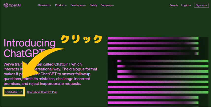 ChatGPTでブログ記事を量産するには、ChatGPTが使えるように登録をする必要があります。