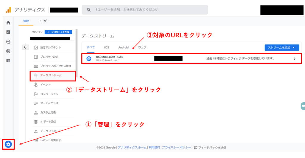上記までの作業で、GoogleアナリティクスGA4でデータ解析する準備は整いましたので、ここからデータ収集をするための設定を行っていきます。